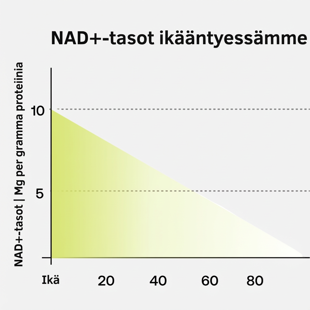Keski-iässä NAD+-tasot voivat olla laskeneet jopa 50 %, mikä voi johtaa nopeampaan ikääntymiseen, matalaan energiatasoon ja aivosumuun.